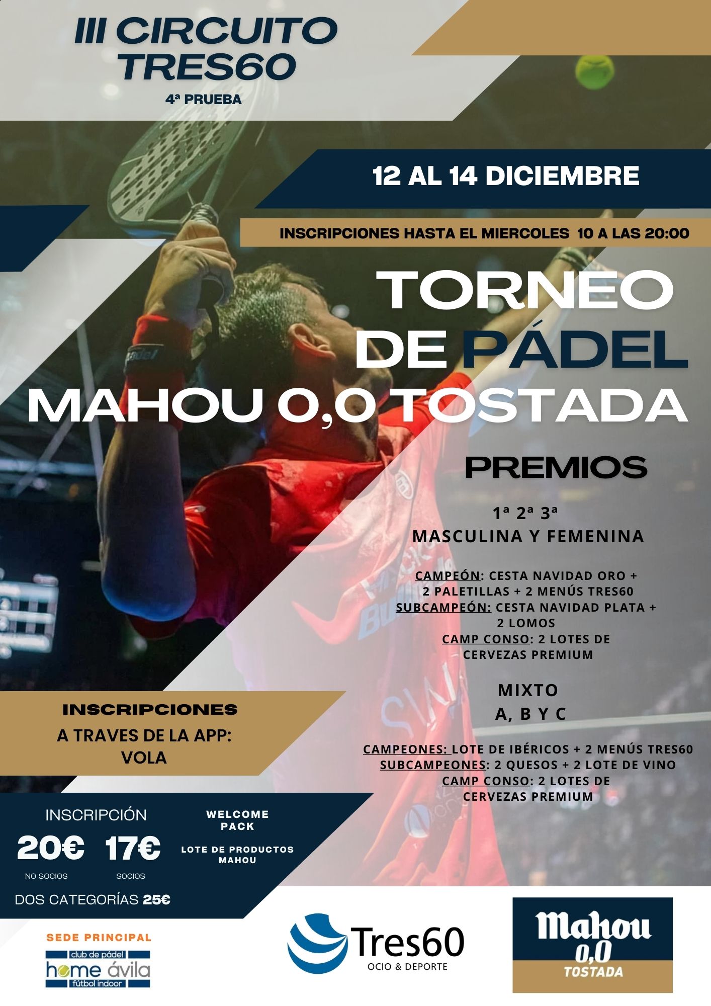 El pádel, es uno de los deportes más practicados en España, el proyecto Tres60 Ocio & Deporte, cuenta con 14 pistas indoor divididas en dos instalaciones, 6 en el centro Tres60 y 8 en el centro Home Pádel Ávila, dando opción a los usuarios de reservar pistas para jugar sus partidos, clases individuales y en grupo, además de poder participar en diferentes eventos como torneos, liguillas, equipos de competición…